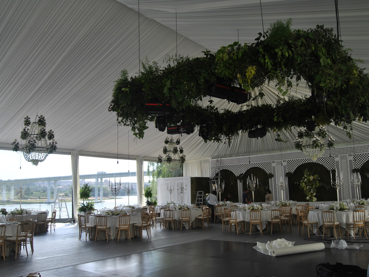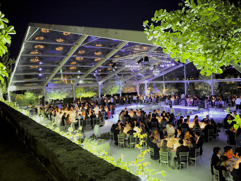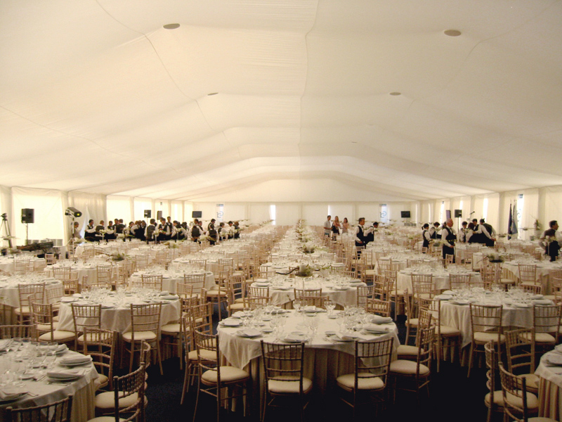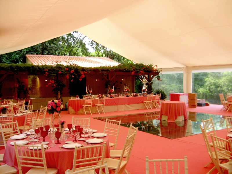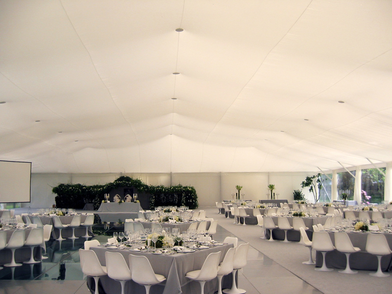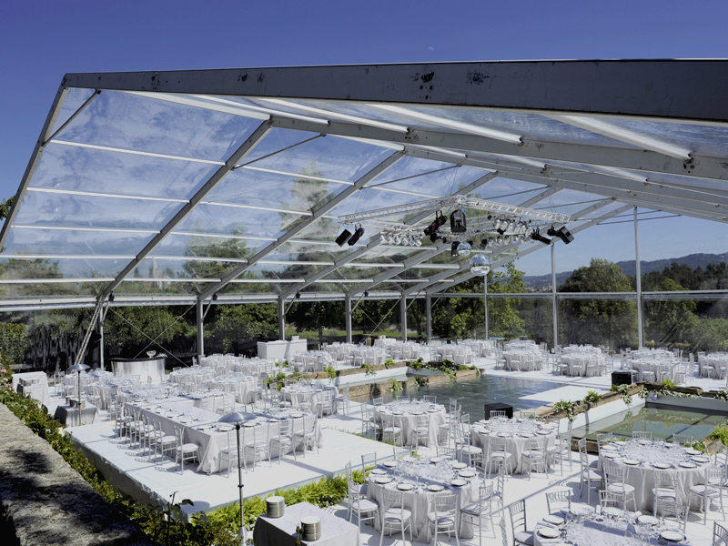 Las carpas dependen de una estructura independiente de aluminio y una lona de PVC de calidad superior, con la posibilidad de acabados personalizados.